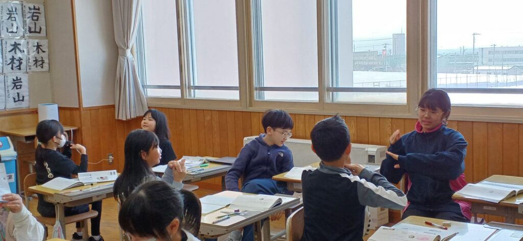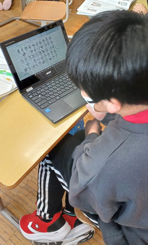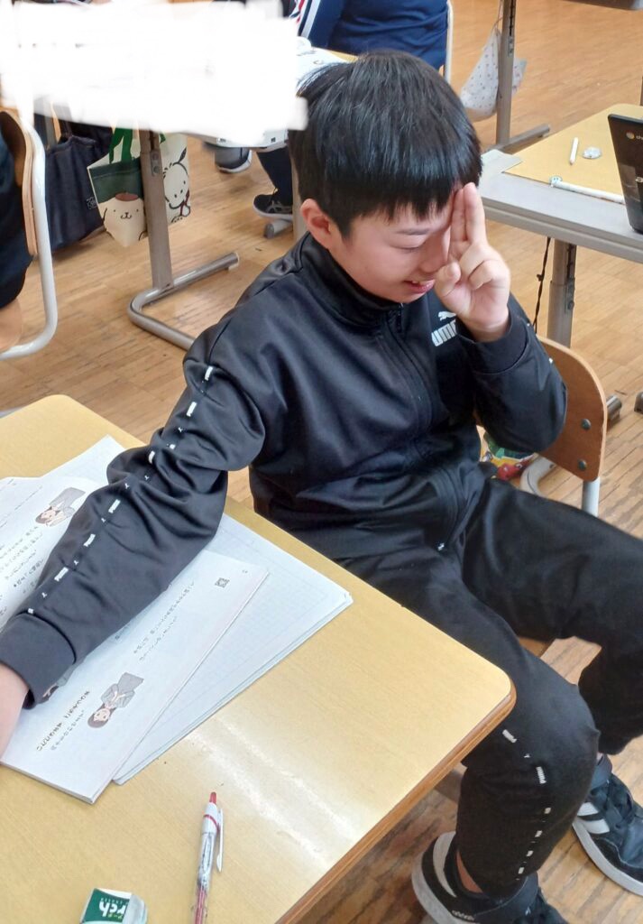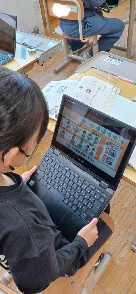 昨日の学習ですが、国語の学習で、『くらしを便利にするために』という勉強しています。そのなかで、手話のあいさつについて学習しました。