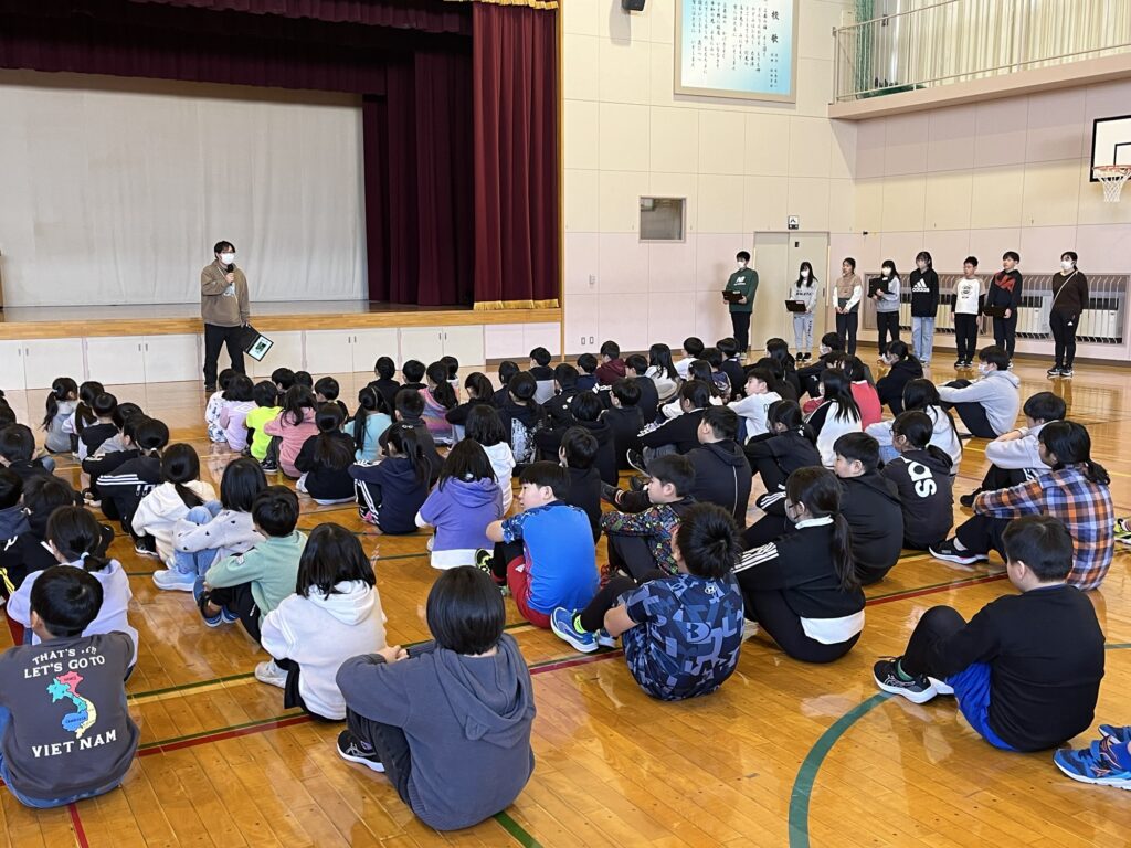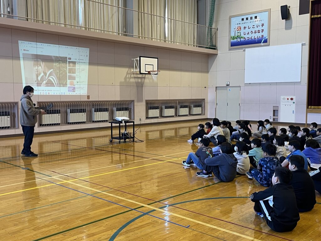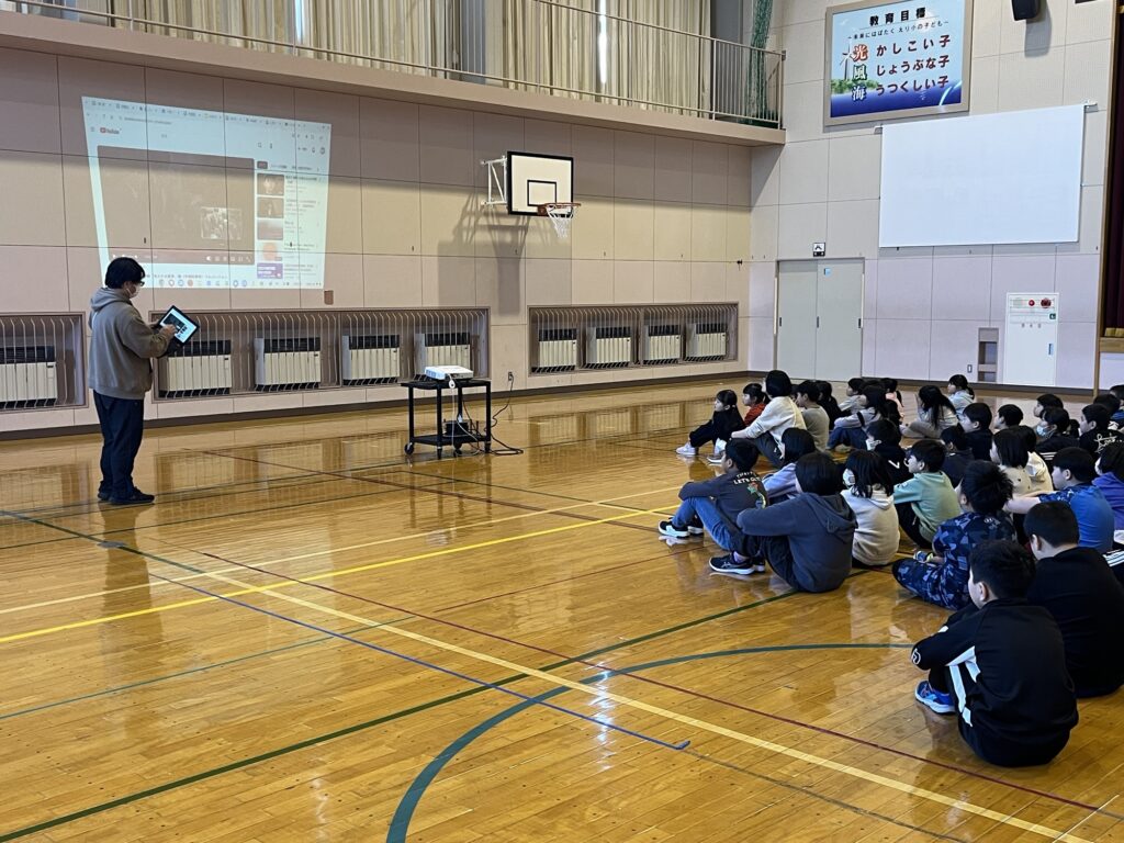 本日の全校朝会では、文部科学省から出されている映像資料を活用して、いじめについて考えました。