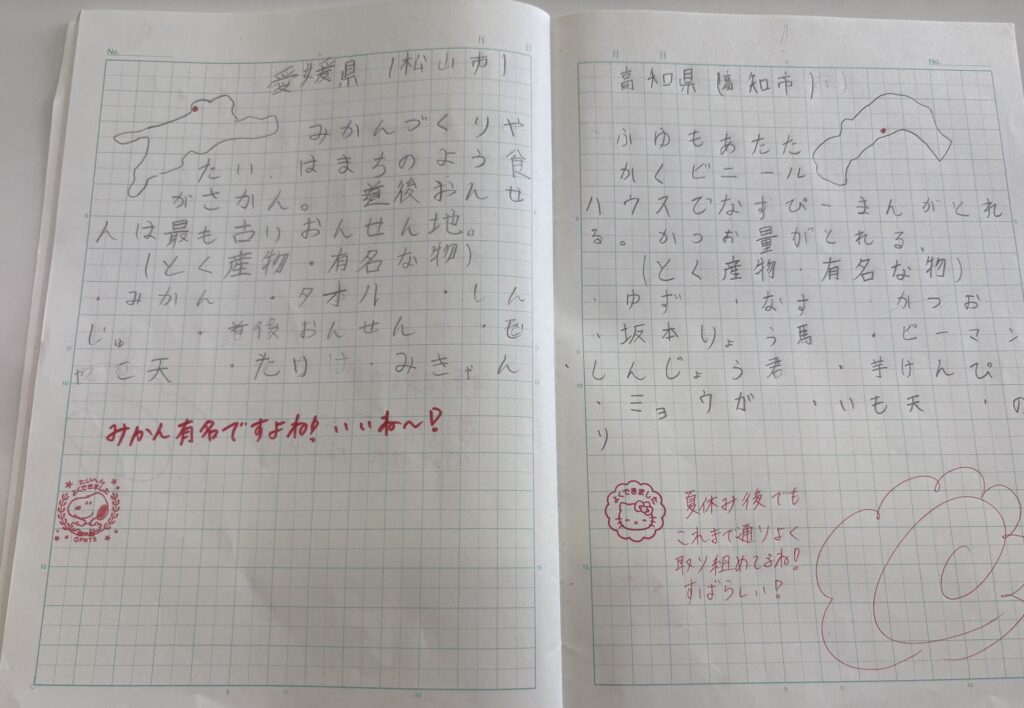 社会科の勉強でお店の商品はどこからきているのかチラシで調べました。