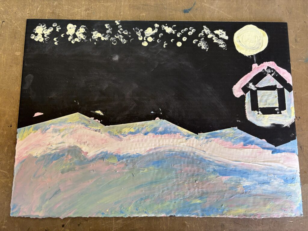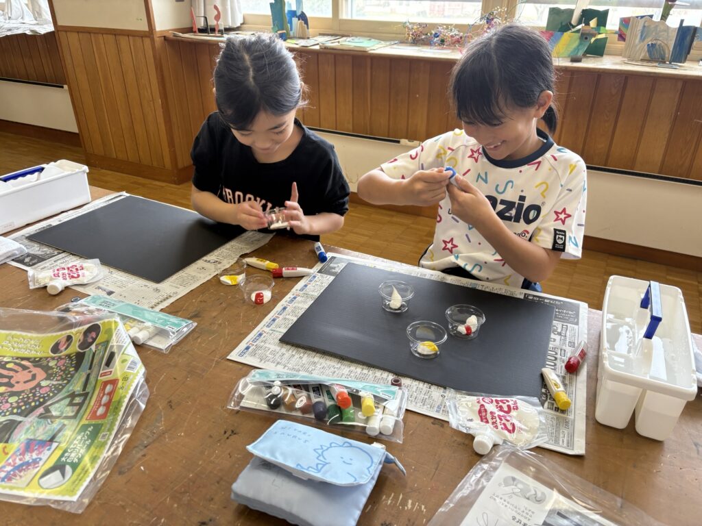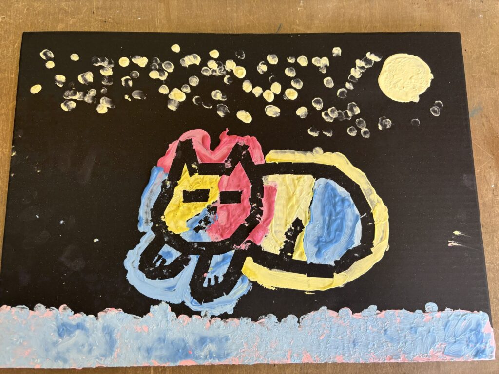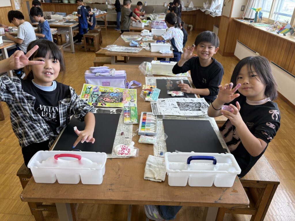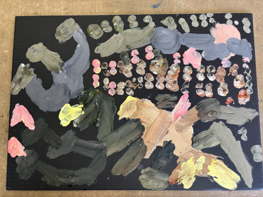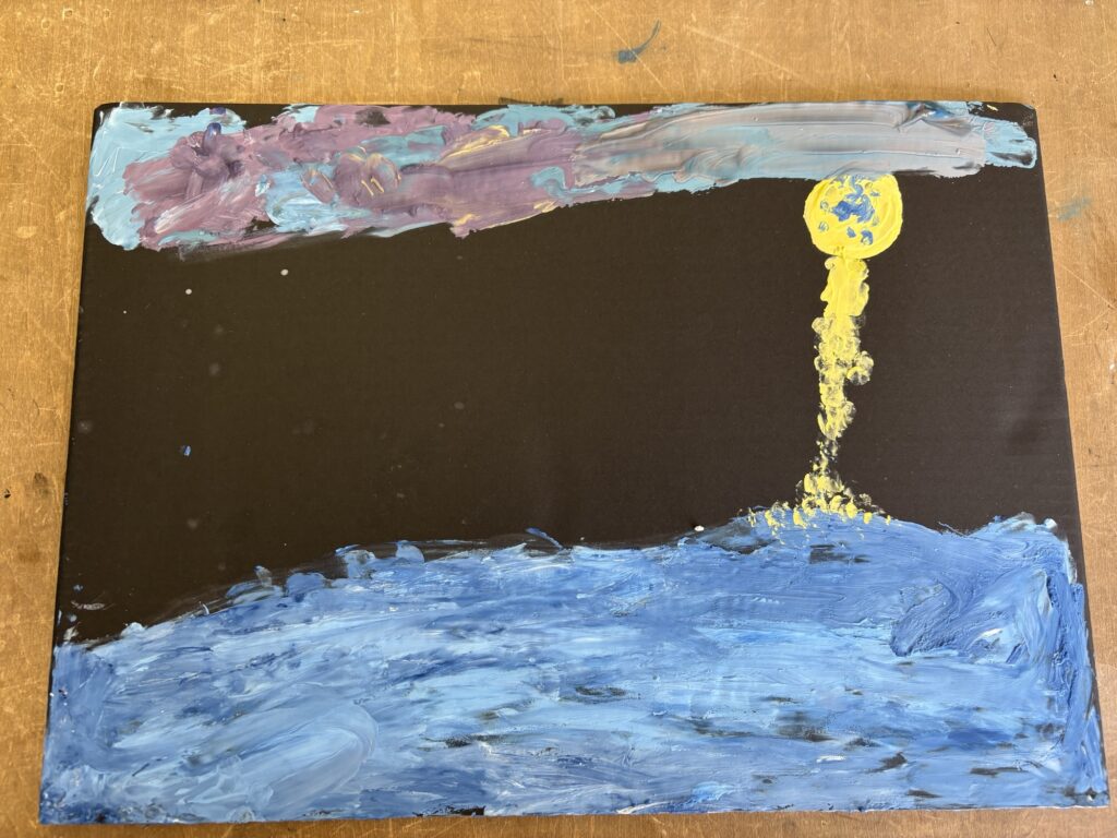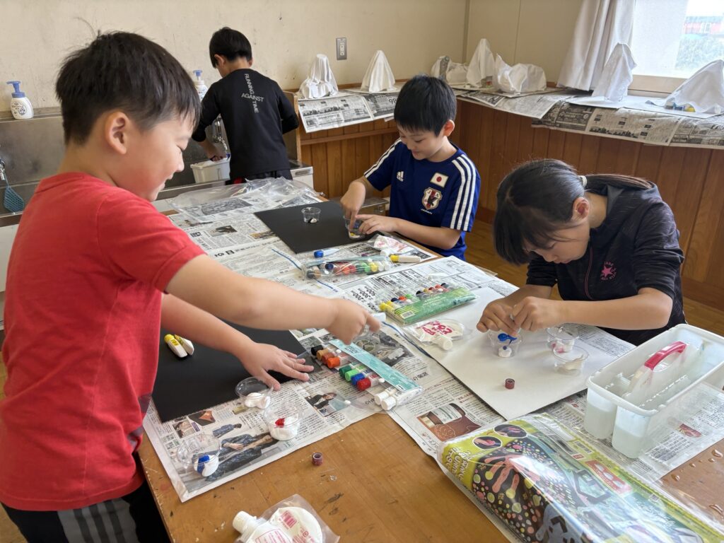 とろとろの液体粘土に色を混ぜ、その感触も楽しみながら絵を描きました。