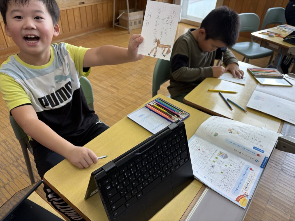 先週になってしまいましたが、新年の挨拶として年賀状の書き方を学びました。