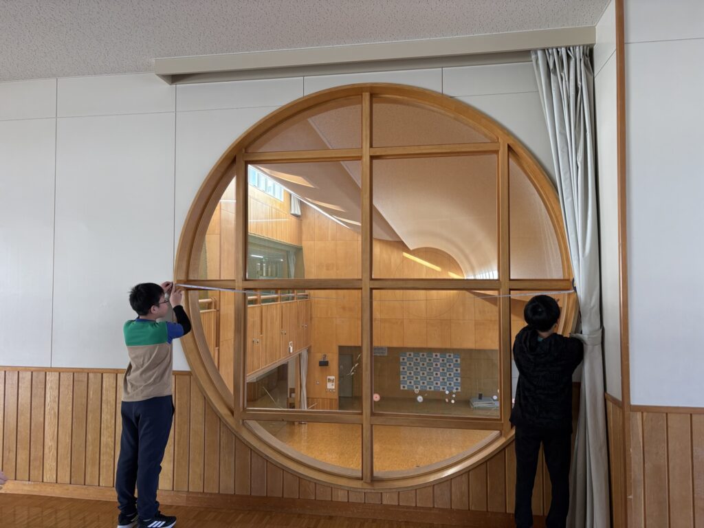 円周と直径にはどのような関係があるのかについて学習しました。円の形をした物の円周と直径を実際にはかって調べ、円周は直径の約3倍であることに気がつきました。