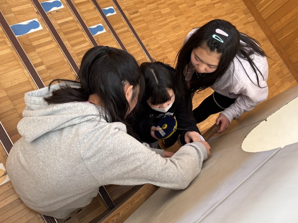 「大きな円の円周ははかれない!無理だ!」と諦めかけていましたが、「円の下半分をはかって2倍すればいい!!」と気づき、大きな円を調べている人もいました。
