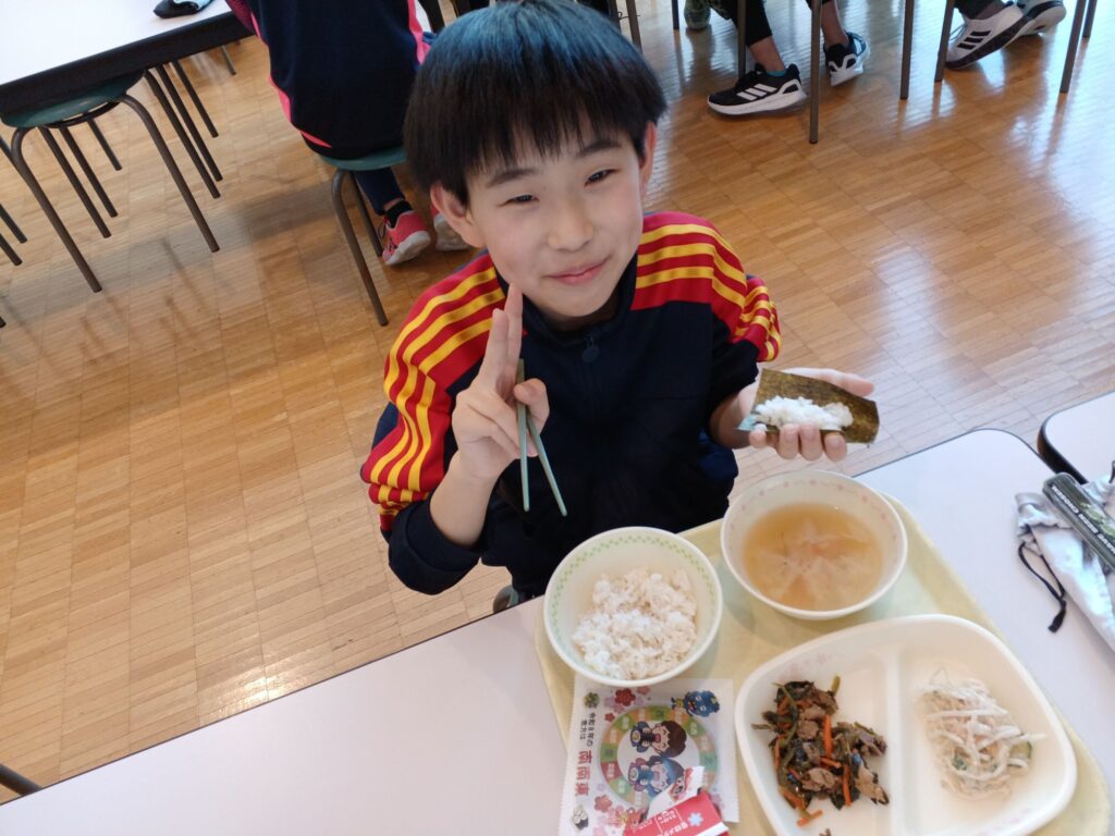 今日は恵方巻を自分で作ってみよう!ということでのりやご飯などののり巻き給食でした。ちなみに、今年の方角は南南東みたいです!