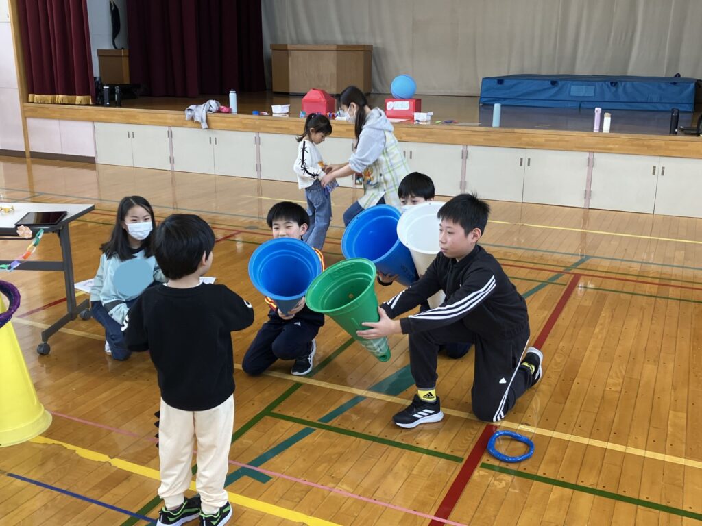 先週、保育所の年長さんが小学校にきて、五年生の子供たちと交流しました