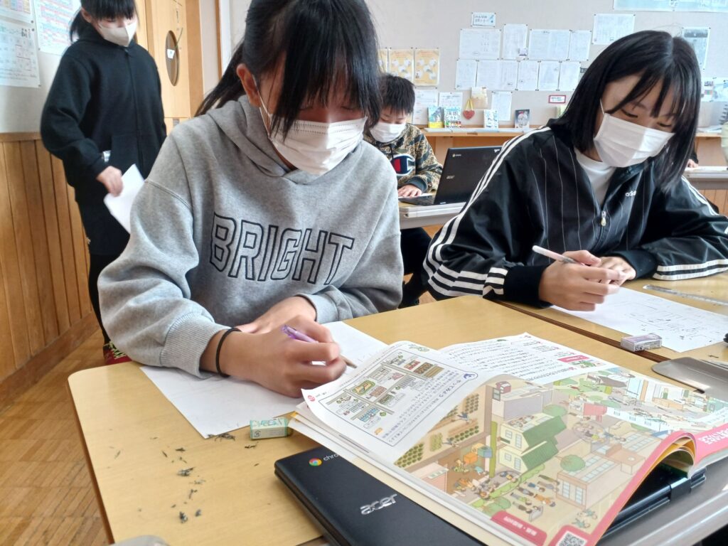 自分の住む地域が私たちの生活とどのように関わり合っているのかを地図に書き出しながら整理しました。
