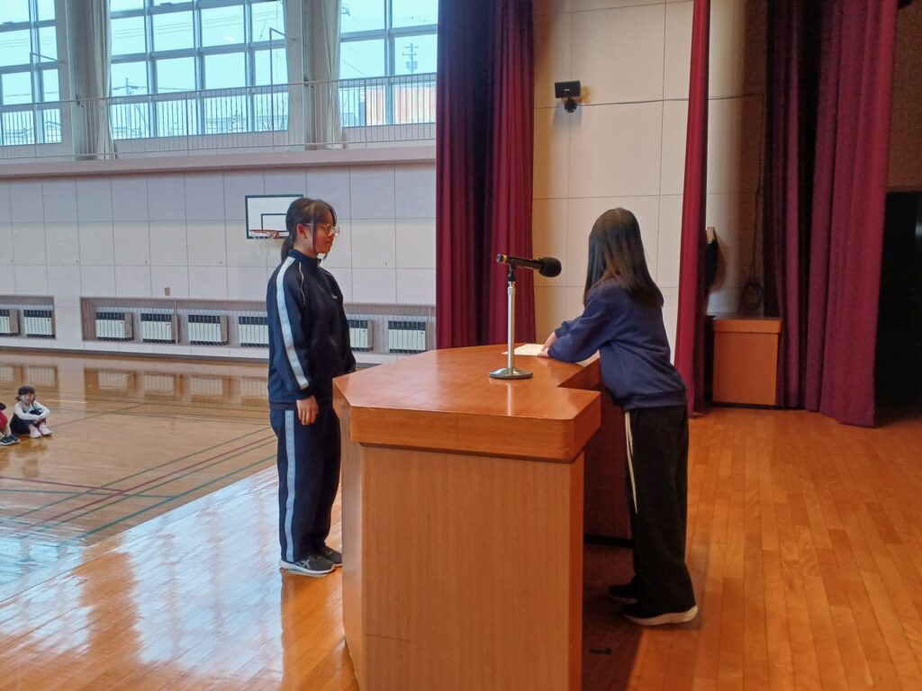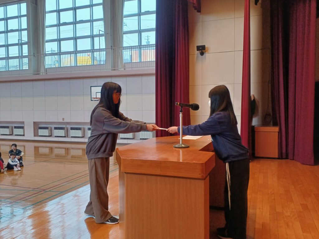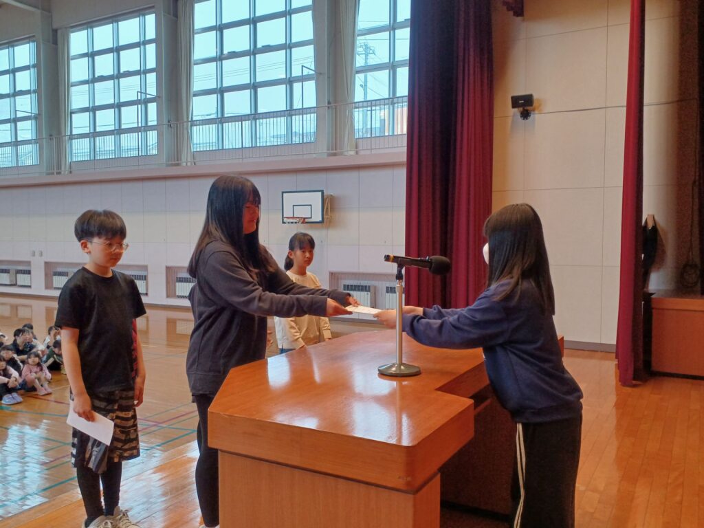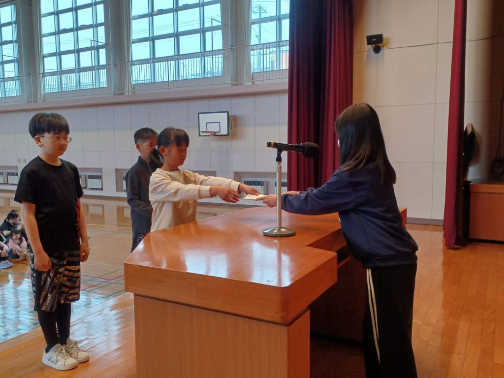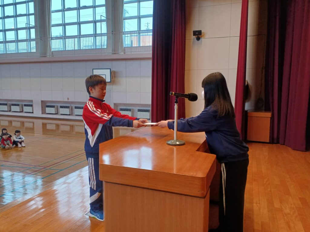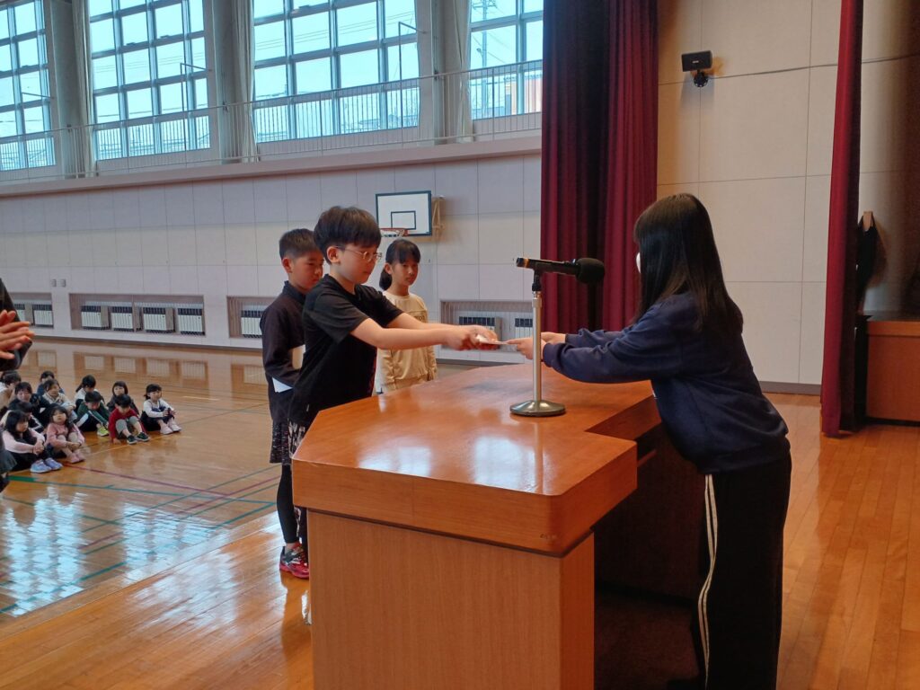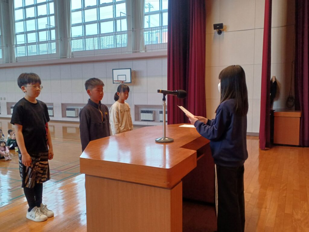 今年度の専門委員、そして学級委員を児童会長より認証されました。みんなで決めた4つの柱を達成できるよう、活躍してもらいたいです。
