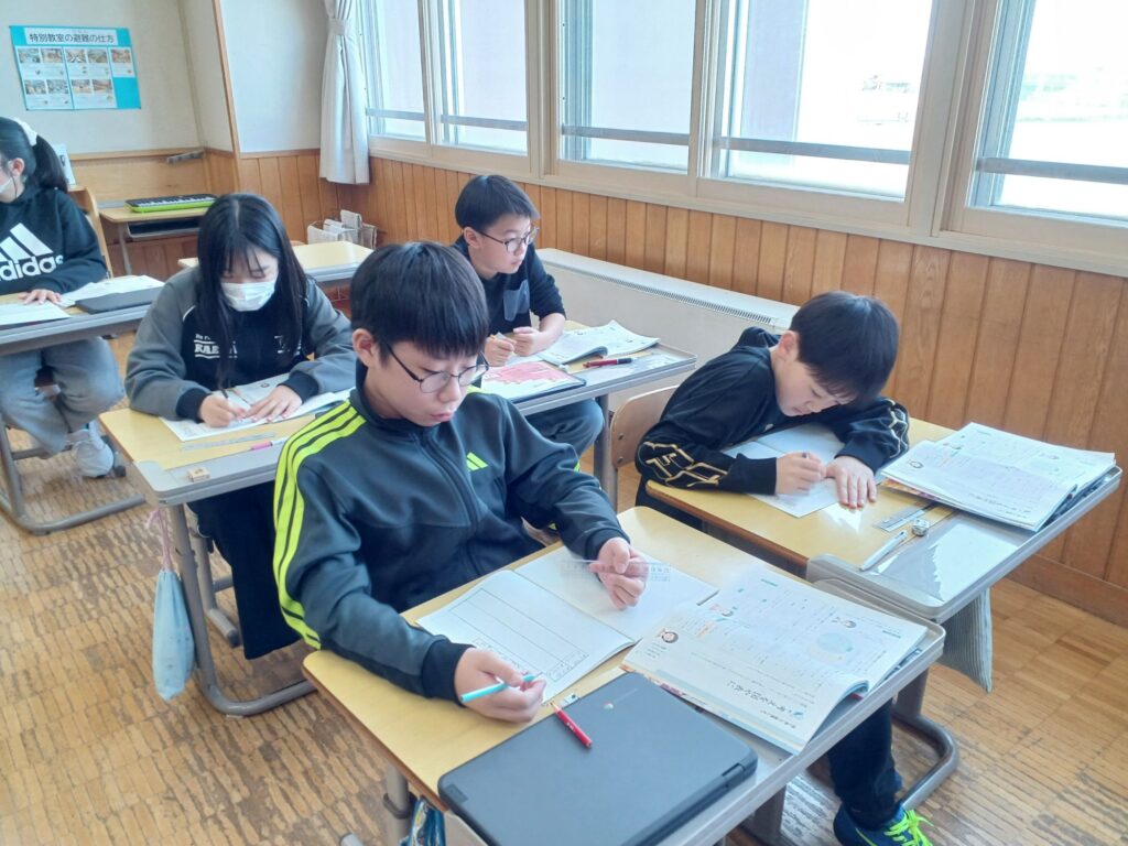 出来上がった図表を発表し、単元全体の振り返りを行いました。(写真は先週のものです)
