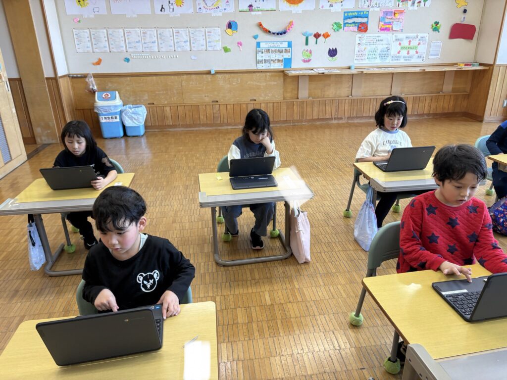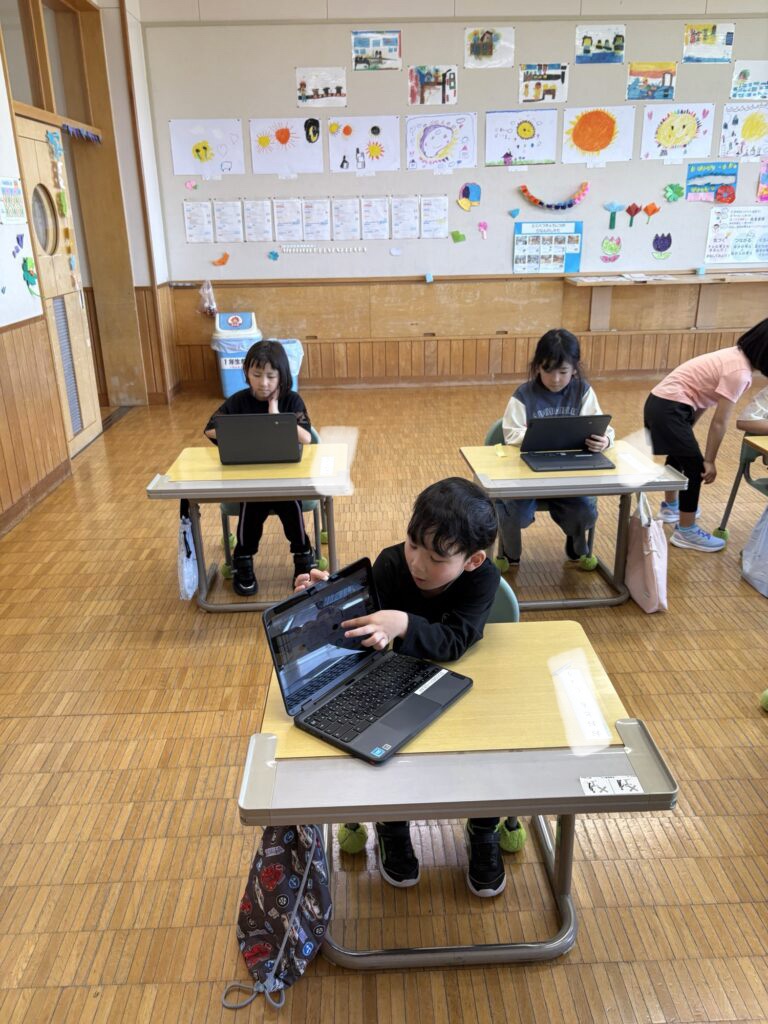 昨日習ったクロムブックを使って、中休みにタブドリをしています!子どもたちは、「クロムブックやりたい!」と早速使っていました!