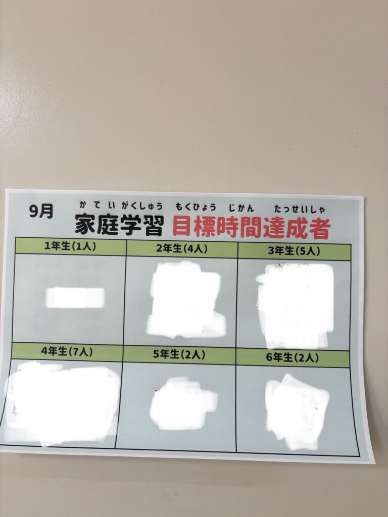 学年✖️10➕α(10分)で50分を目標時間としています。先月のシートでは、過去最多の7人!